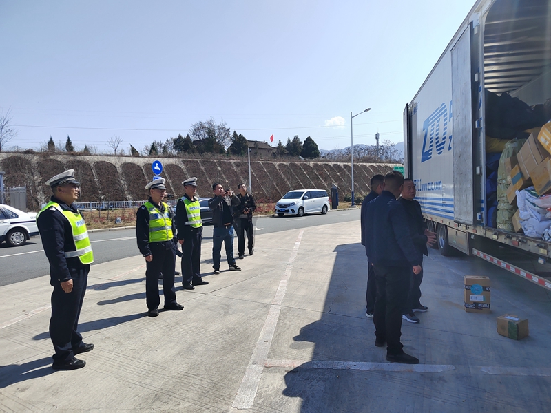 3月11日中午,高交大队宝汉中队根据上级指令,要求协助金台公安分局和金台区烟草专卖局,拦截协查一辆跨区域非法运输香烟的车辆,中队教导员迅速组织七名警力,在G85银昆高速宝鸡南服务区设置查缉点,发现嫌疑车辆后,执勤民警科学引导车辆进入服务区待查点,停车接受检查,在三方共同检查后,最终成功查获非法运输多品种香烟100余条。