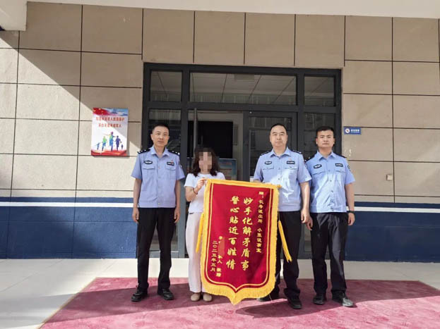 近日清晨,长寿派出所的玻璃门被轻轻推开。李女士手捧锦旗,锦旗上“妙手化解矛盾事,警心贴近百姓情”的鎏金大字,在晨光中折射出温暖的光。