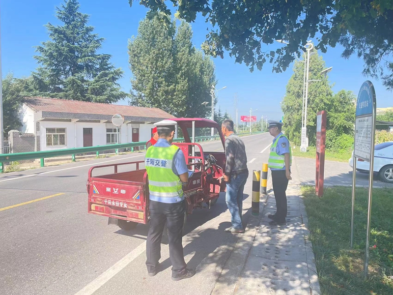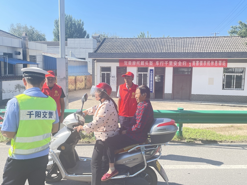 为持续推进农村道路交通安全专项整治行动,切实提高农村居民道路交通安全意识,千阳交警在辖区南寨镇重要交通路口建立了农村交通安全劝导站,持续抓好文明劝导。千阳交警充分发挥农村道路交通安全劝导站劝导员作用,坚持“交警+劝导员”上路劝导模式,对辖区内车辆超载及违法载人、驾驶电动车、摩托车不戴头盔等交通违法行为进行及时劝导和教育,做到“发现一起、劝导一起,纠正一起”。更好的预防道路交通事故的发生,提高广大群众安全文明出行意识。
