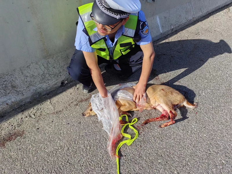 上午8时许,巡逻民警对该动物进行控制,及时消除了道路交通安全隐患。后经相关部门鉴定,该动物为国家二级保护野生动物——麂鹿。