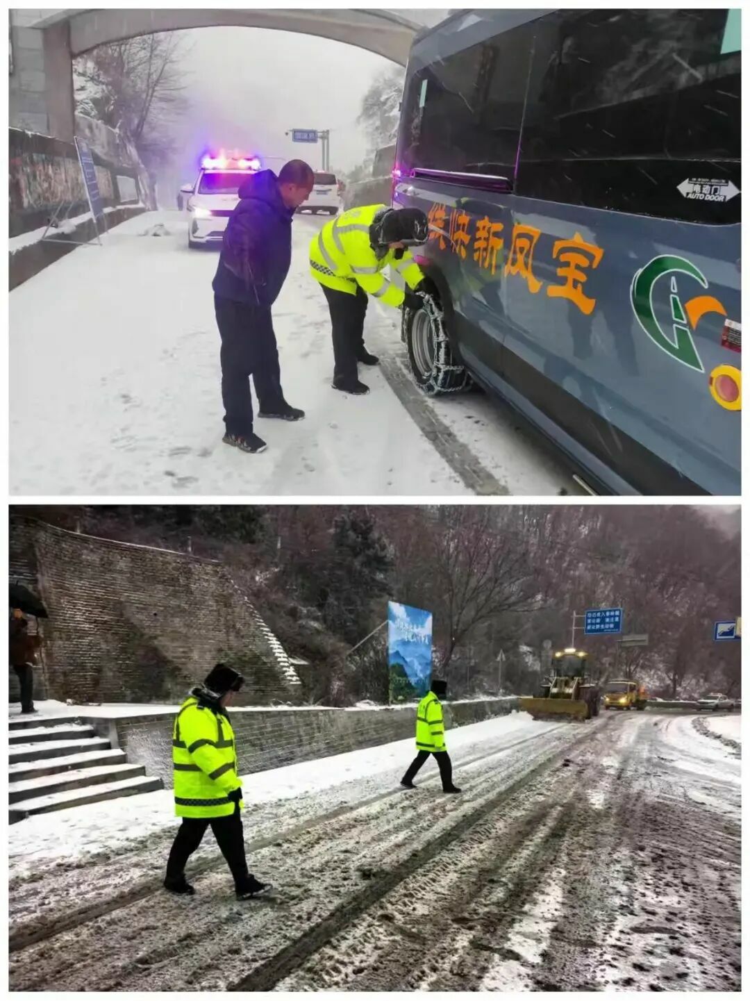 雪情就是命令,畅通就是责任。降雪伊始,宝鸡公安交管支队主要领导靠前指挥,科学调配全市警力,指挥中心24小时实时监测国省干线、山区路段及城区主干道路网运行态势,精准调度各大队应急处置力量 。各区县交警大队迅速响应,渭滨、太白、凤县等受降雪影响较重区域中队民辅警提前到岗,在219省道渭滨段、244国道潘太段、秦岭梁路段等关键卡点驻守,实行24小时不间断勤务模式,第一时间掌握路面积雪结冰情况,确保应急处置高效有序。