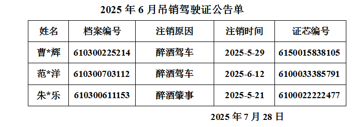 依据《机动车驾驶证申领和使用规定》(公安部令第172号)有关规定,以下机动车驾驶证已被依法注销,因驾驶证未交回,现予以公告机动车驾驶证作废。