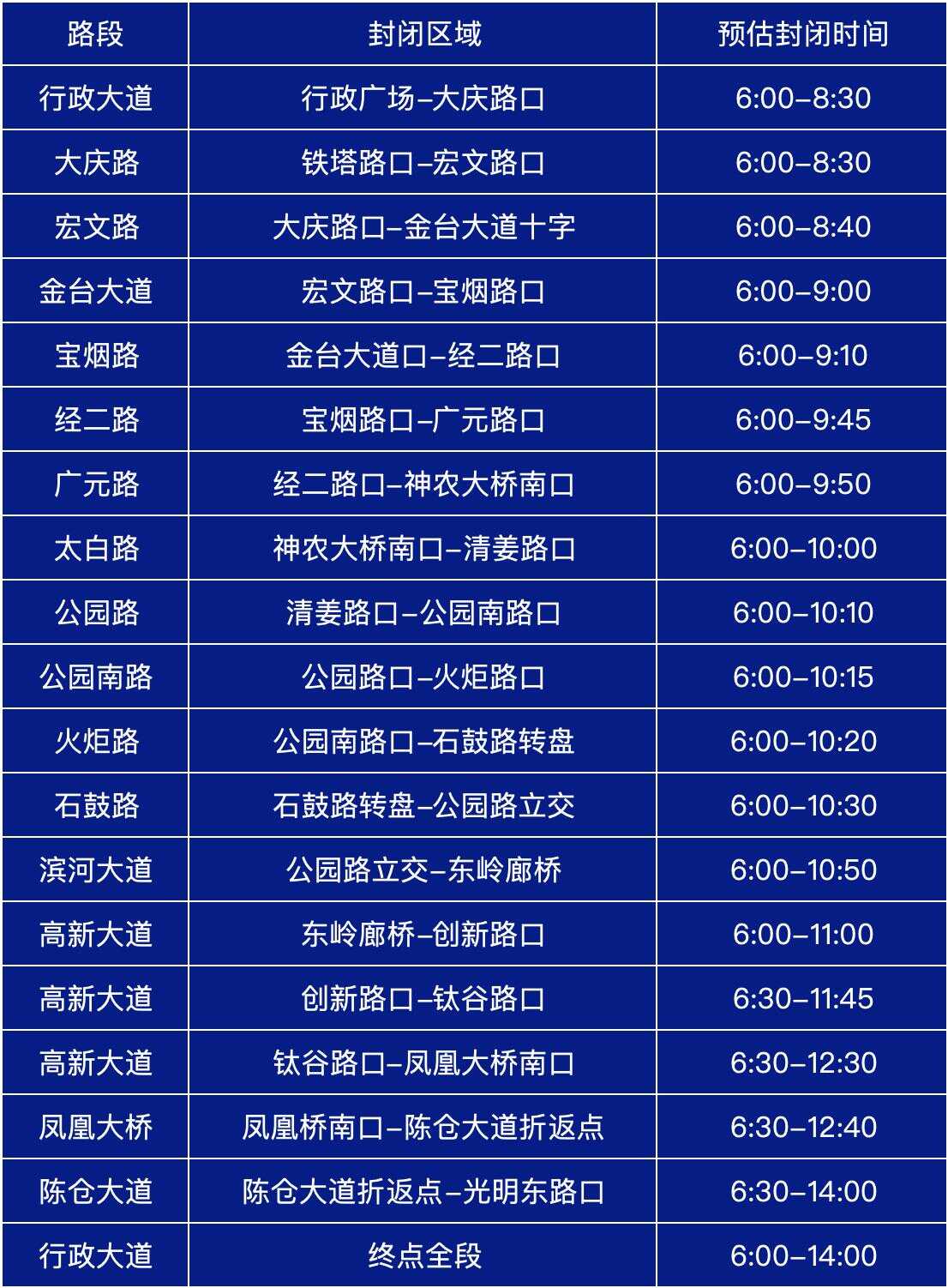 2、10月26日6时开始对涉赛路线前21KM(行政大道起点至高新大道学子路口)进行全程双向封闭,实行交通管制。
