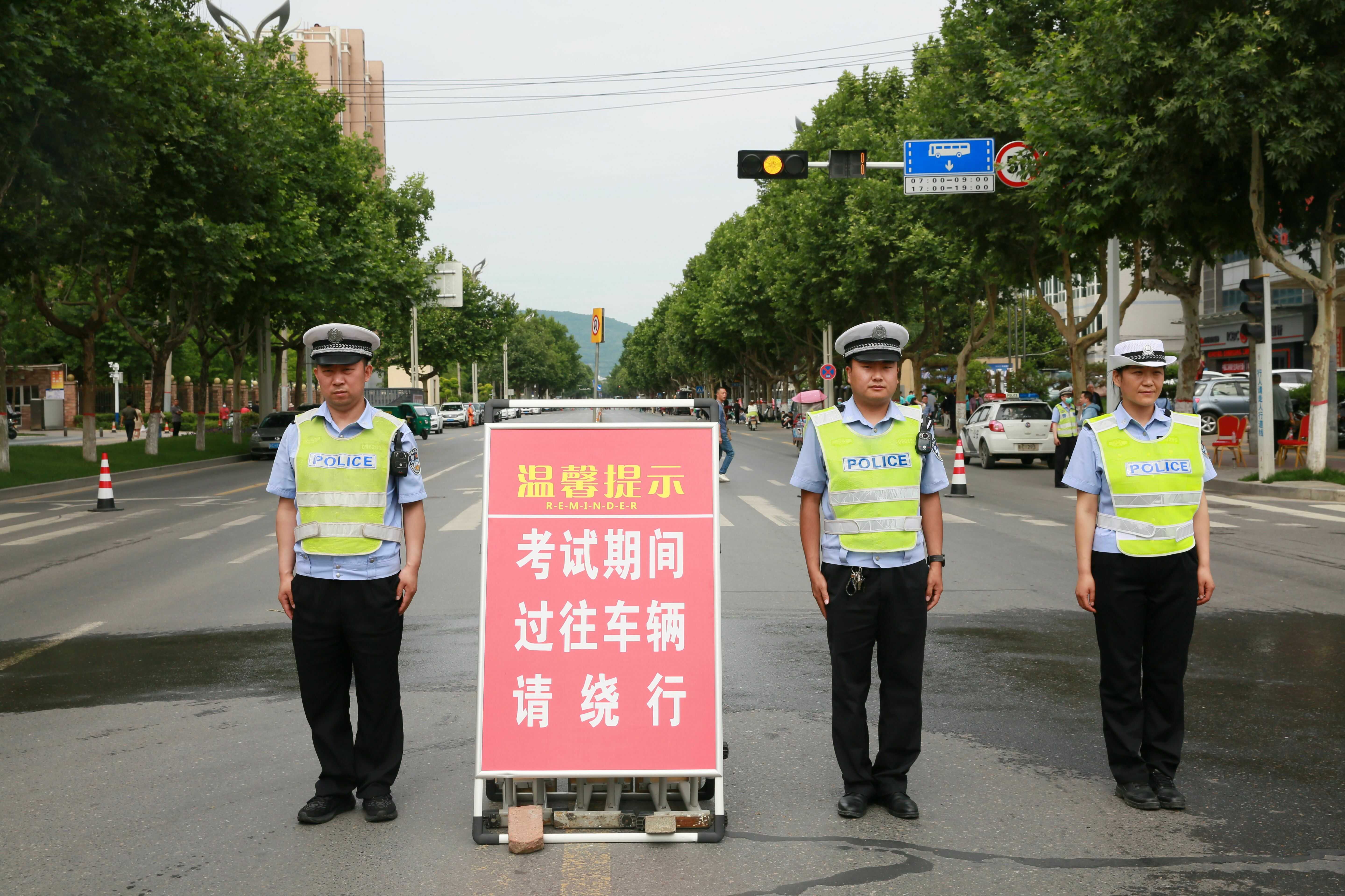 考试期间,交警部门将在各考点门前部署警力,加强送考高峰时段考点周边道路交通巡控、指挥疏导,做好沿途交通保障,提高考点周边道路通行效率。届时,交警还将对考点周边部分路段实行临时交通管制,规范停车秩序。在考点门前及周边道路设置“禁鸣”警示牌,为考生营造安静的考试环境。